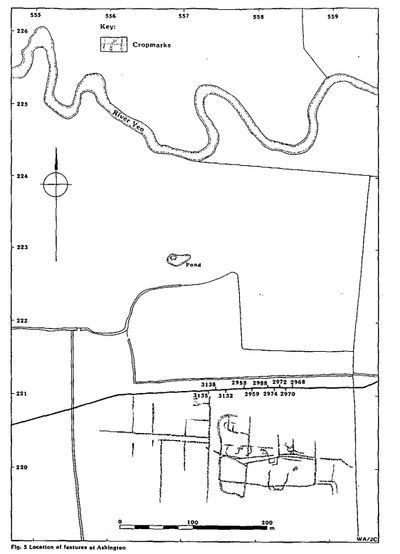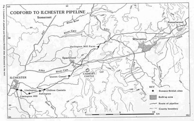 Ashington is particularly interesting in that the cropmarks show two distinct forms; the western part is a planned rectilinear field system whereas the eastern part is less regular and includes small enclosures, some of which may be buildings. Elements of the regular western part of the site certainly continue into the eastern part, and both parts are laid out on the same alignment. Pottery recovered from the observations and excavations along the pipeline route at Ashington was predominantly 3rd-4th centuries AD in date, although small quantities of earlier Roman material were also found. The close proximity of the market at Ilchester is indicated by the presence of imported finewares and also fragments of a Dressel 20 amphora, a type commonly found at Ilchester. The excavations produced tentative evidence of stone-founded buildings and a possibility of small-scale industrial activity.
